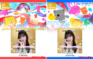 この度、Pocochaイベントに以下のライバーさんが入賞されましたのでご報告致します。 【イベント名】 ・POCO LAND 2025 Modern 20stars 総合ランキング Sランク ・POCO LAND 2025 Modern Generations Titans Sランク 【イベントランキング】 ・20stars 総合ランキング GrandSeries Diamon…