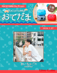 この度、Pocochaイベントに以下のライバーさんが入賞されましたのでご報告致します。 【イベント名】 POCOTOMOコレクション POCOTOMOおてだま3個セット 【ランク帯】 S1~S6 第1ブロック 【イベントランキング】 第3位 きいち❄︎☃︎¨̮ 388,873pt 【イベント期間】 2026.1.27 このイベントは入賞すると、「POCO…