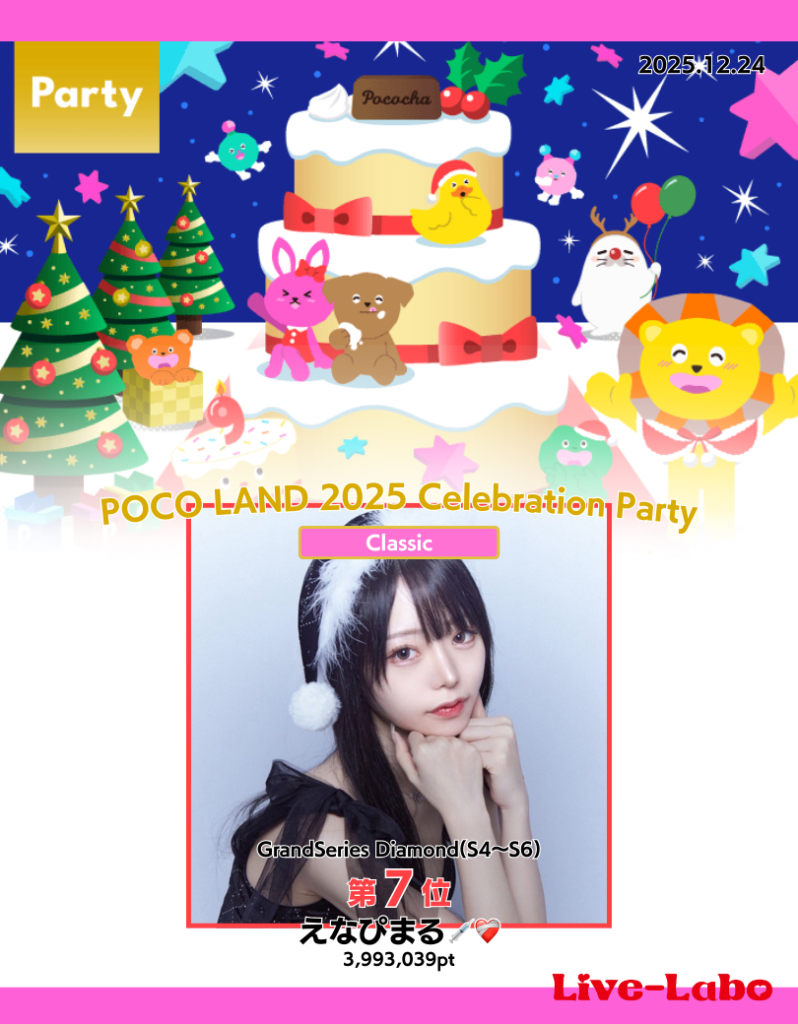 このイベントは、2025年12月11日~2025年12月17日に開催されたイベントで「POCO LAND 2025 Celebration Party 出場権利」を獲得したライバーさんのみが参加できるイベントです!