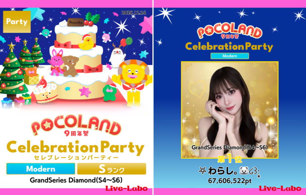 このイベントは、2025年12月11日~2025年12月17日に開催されたイベントで「POCO LAND 2025 Celebration Party 出場権利」を獲得したライバーさんのみが参加できるイベントです!